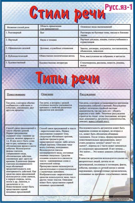 Стенды для детских садиков Стенды для школ 14. (26). Азбука Стенд "Стили речи". Размер 60х90 см Назад